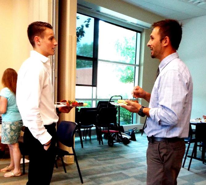 New students met their facilitator Jason Mauhar, right, at the kick-off meeting on Aug. 2 and began building an important relationship.