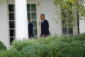 President Barack Obama walks to the the Oval Office of the White