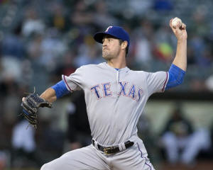 Rangers starting pitcher Cole Hamels (35) delivers a pitch against