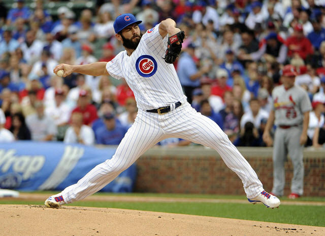 Cubs starting pitcher Jake Arrieta (49) throws against the St. Louis