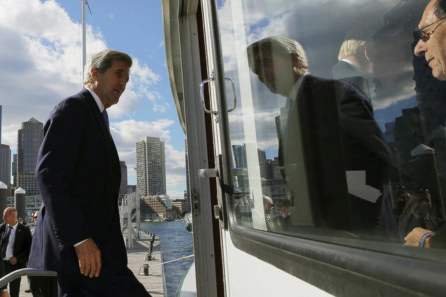Boston harbor with British Foreign Secretary Boris Johnson, European