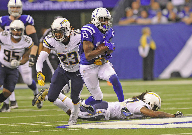 Colts receiver T.J. Hilton (13) makes the game winning touchdown