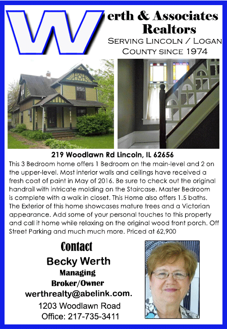 All real estate advertised in the Lincoln Daily News is subject to the Fair Housing Act for 1968 which makes it illegal to advertised "any preference, limitation, or discrimination based on race, color, religion, sex or national origin, or intention to make special preference, limitations, or discrimination."