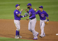 Cubs shortstop Javier Baez (L) and right fielder Jason Heyward