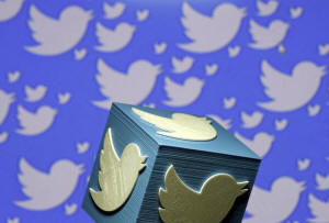 A 3D-printed logo for Twitter is seen in this picture illustration