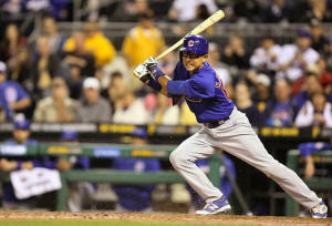 Cubs pnch hitter Munenori Kawasaki (66) reaches on an error and