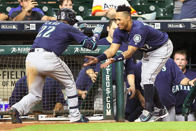 Mariners second baseman Robinson Cano (22) celebrates with center