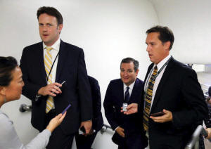 Senator Ted Cruz (R-TX) (C) speaks with reporters regarding a