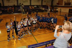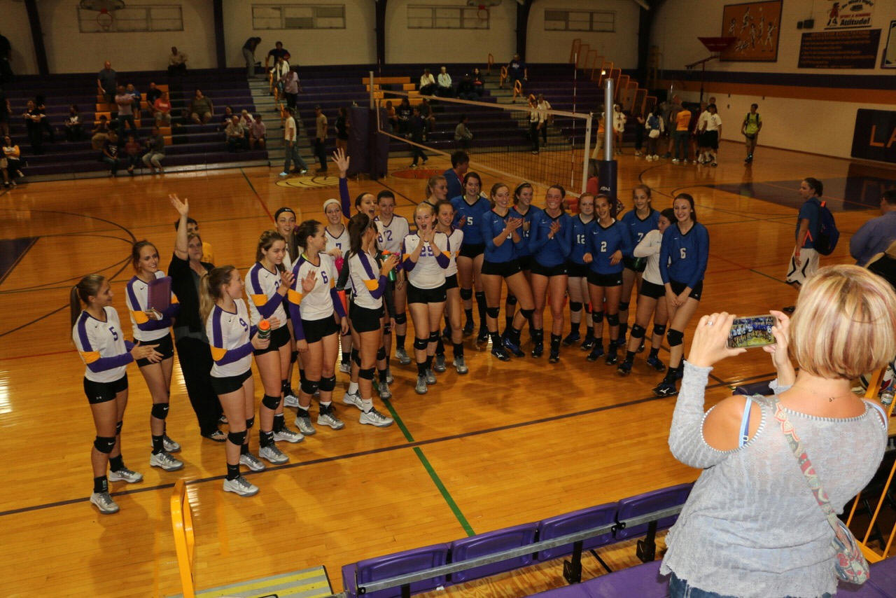 Lutheran volleyball teams gathered after the match Tuesday night to