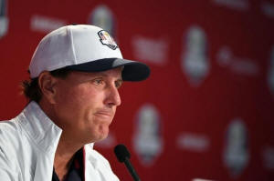 Team USA golfer Phil Mickelson addresses the media before their