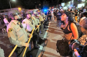 Police in riot gear tried to contain the demonstration, arresting