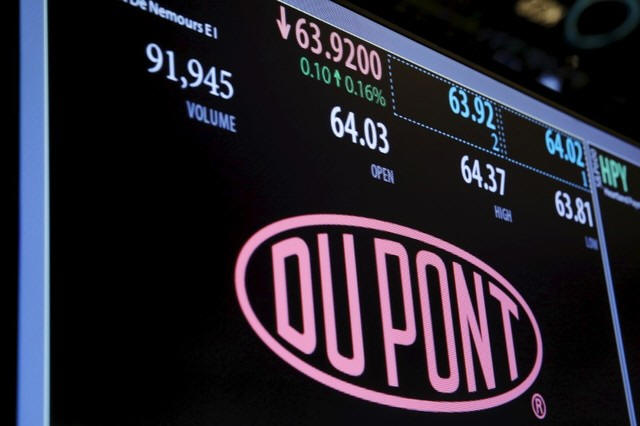 $72.00. DuPont's shares dipped 1.5 percent and Dow's shares were
