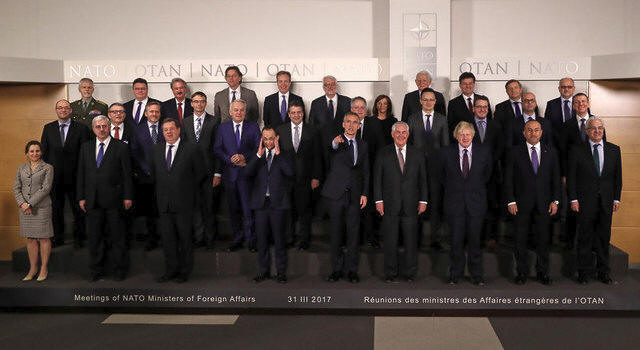 NATO Foreign Ministers take part in a meeting at the Alliance's