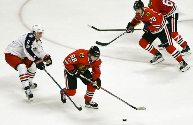 Blackhawks right wing Patrick Kane (88) and Chicago Blackhawks left