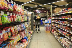 A customer selects products at a supermarket in Shanghai, February