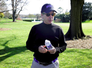 Senator Rand Paul speaks to an aide after playing golf with U.S.