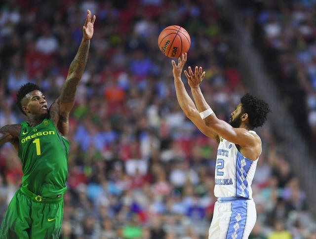 North Carolina Tar Heels guard Joel Berry II (2) shoots over Oregon