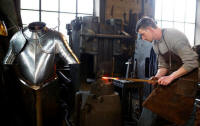 works on an suit of armour for the Vatican's Swiss Guards at his