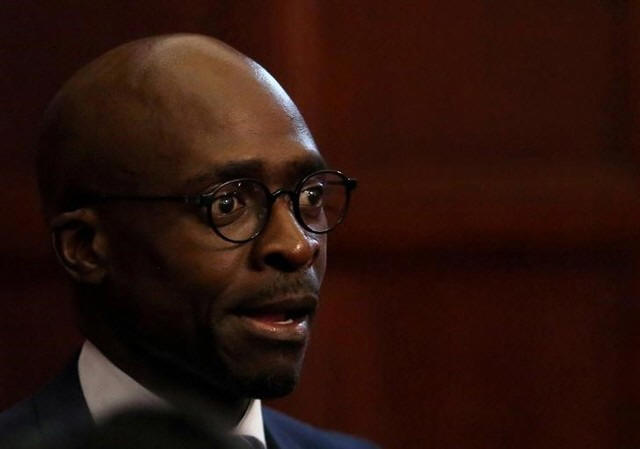 South Africa's new finance minister, Malusi Gigaba looks on after the swearing in of cabinet ministers following a reshuffle that replaced Pravin Gordhan as finance minister with Gigaba along with various other ministers and their deputies in Pretoria, South Africa, March 31,2017. REUTERS/Siphiwe Sibeko/File Photo |