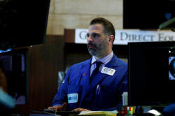 A specialist trader works at his post on the floor of the New York