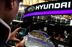 A man takes pictures of a Hyundai car during the 15th Shanghai