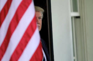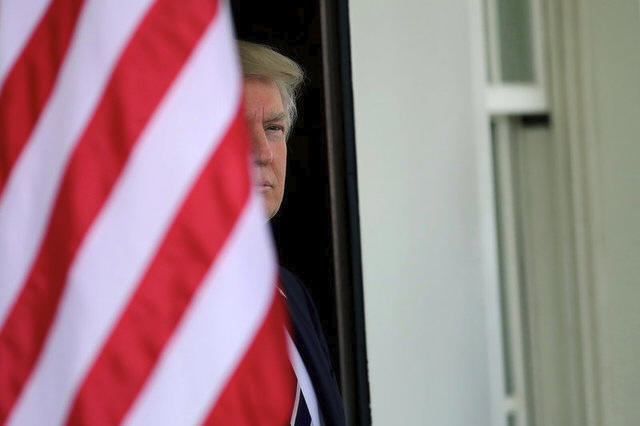 President Donald Trump waits for the arrival of Egypt's President Abdel