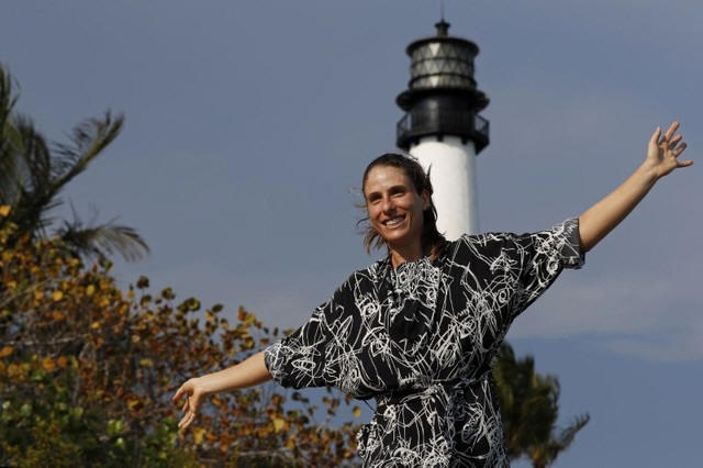 Johanna Konta of Great Britain poses for a Champion's portrait at Fort Florida Lighthouse after her match against Caroline Wozniacki of Denmark (not pictured) in the women's singles championship of the 2017 Miami Open at Crandon Park Tennis Center. Konta won 6-4, 6-3. Mandatory Credit: Geoff Burke-USA TODAY Sports |