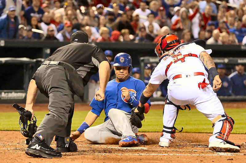 tag of St. Louis Cardinals catcher Yadier Molina (4)