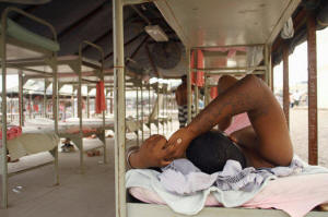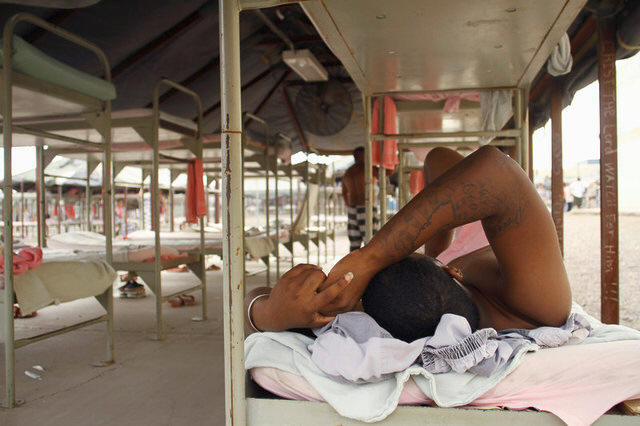 An inmate serving a jail sentence rests on his bed at Maricopa