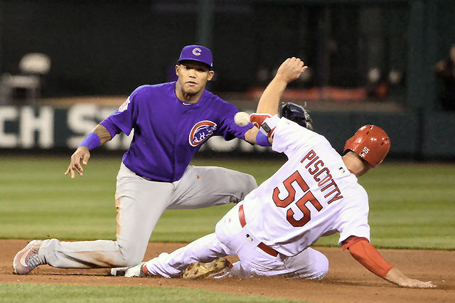 Addison Russell (27) covers during the fifth inning at Busch