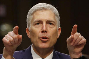 U.S. Supreme Court nominee judge Neil Gorsuch testifies during a