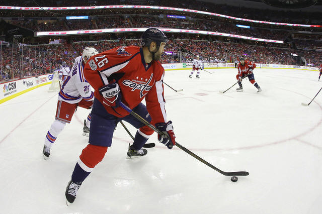 Capitals right wing Daniel Winnik (26) skates with the puck as New