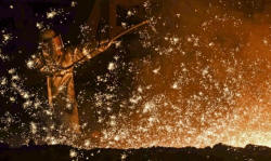 A steel-worker is pictured at a furnace at the plant of German steel