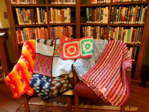 scraps, too small for fabric squares or yarn to be knit or crocheted