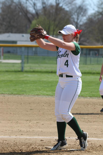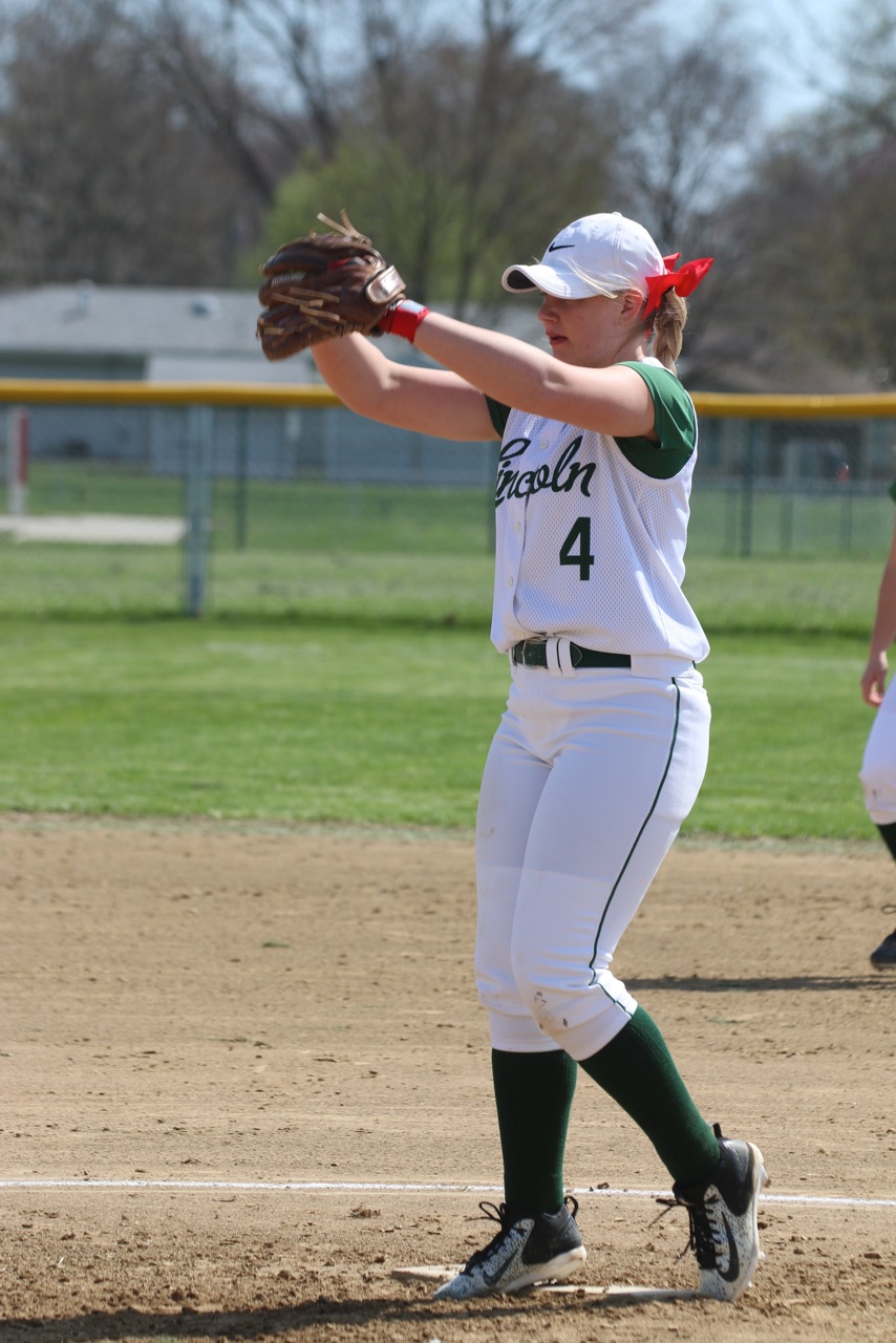 pitched fantastic this week and earned all three wins for the Railsplitters. Here she waits for the pitch in Saturday's game