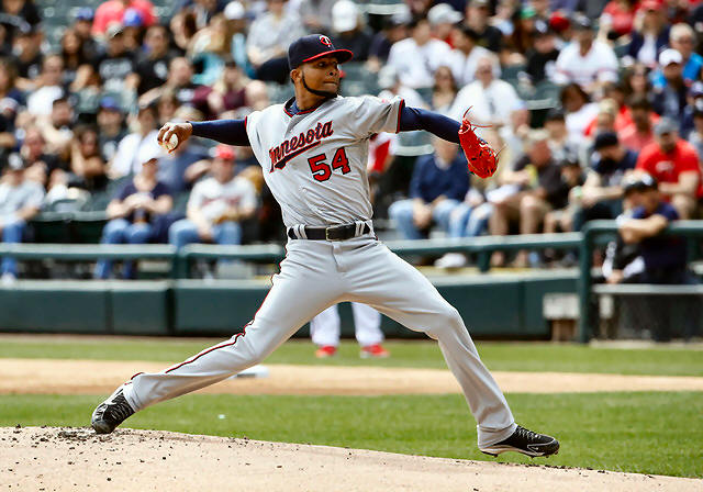 Twins starting pitcher Ervin Santana pitches against the Chicago