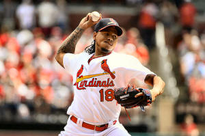 Cardinals starting pitcher Carlos Martinez (18) pitches to a
