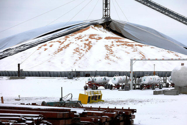 A mountain of grain sits in a storage pile, as midwestern grain