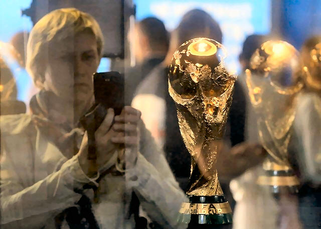 Cup trophy, which is on display during a ceremony marking 1,000 days