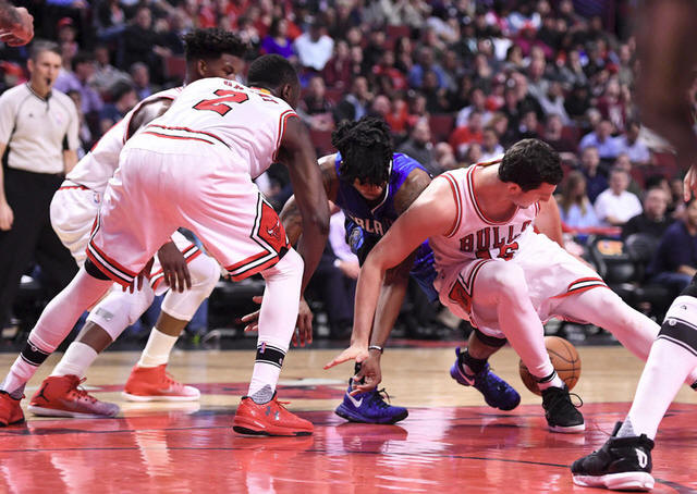 Bulls guard Jerian Grant (2), forward Paul Zipser (16) and forward