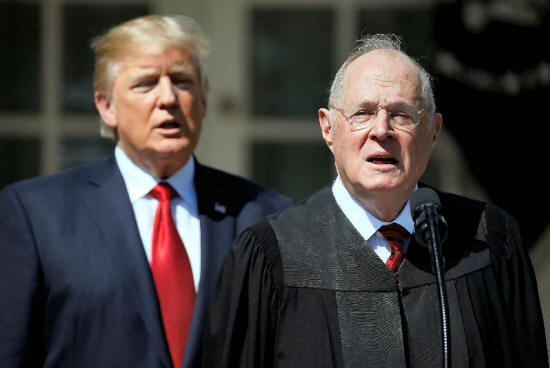 Donald Trump listens as Justice Anthony Kennedy speaks