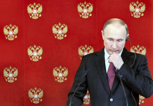 Russian President Vladimir Putin attends a joint news conference