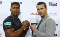 Anthony Joshua and Wladimir Klitschko pose during the press