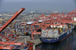 Ships gather off the ports of Los Angeles and Long Beach, California