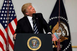 U.S. President Donald Trump delivers remarks at the National