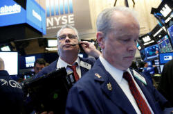Traders work on the floor of the New York Stock Exchange (NYSE) in