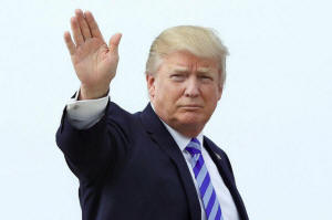 President Donald Trump waves as he boards Air Force One at Joint