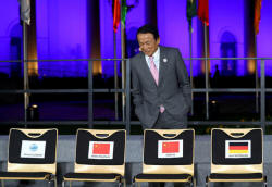 Japanese Finance Minister Taro Aso arrives for the