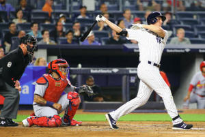 1, 2015, against Boston. Aaron Hicks hit a solo home run off