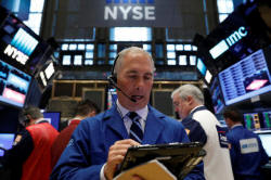 Traders work on the floor of the New York Stock Exchange (NYSE) in